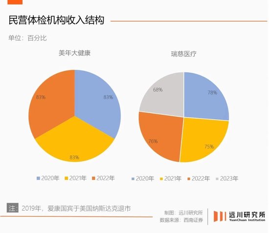 体检机构的消费主力一直是公司老板和HR,根据美年大健康、瑞慈医疗等机构的数据,团检无论是收入还是人次占比都远高于个检。