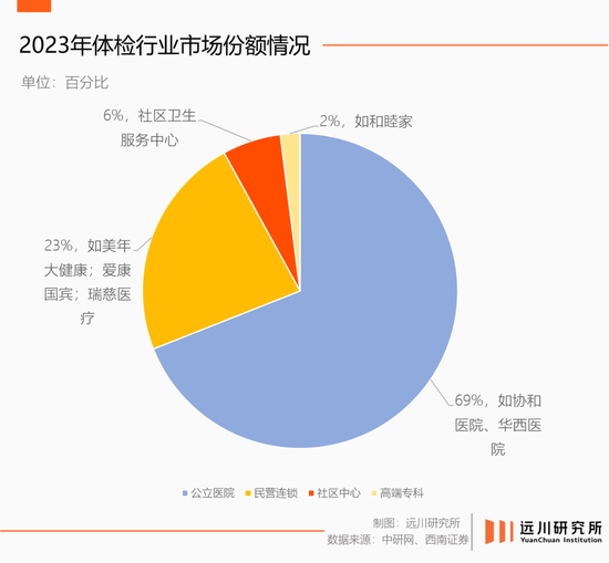 公共医疗资源的普及,让公立医院成为悬在体检中心头顶的价格锚。在公立医院占据主要市场份额的情况下,民营体检机构贵一点还情有可原,贵太多就算大逆不道。