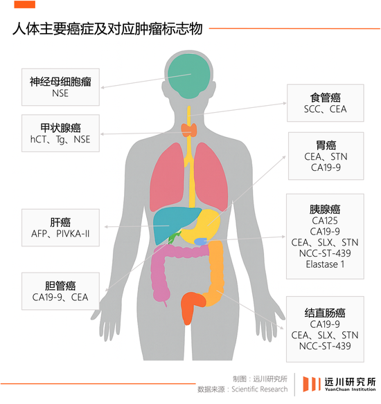 这就导致癌症不像高血压或糖尿病,存在一个“一测就中”的生化指标。以肿瘤标志物为例,前列腺对应PSA;而爱康国宾体检报告提到的胚癌抗原(CEA)存在于多个肿瘤,光这一项指标就能凑好几桌麻将。