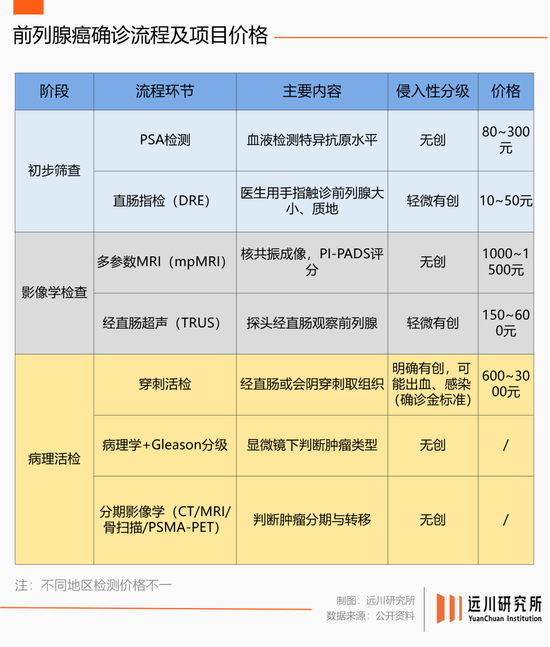 因此,癌症从筛查到确诊其实是一个漫长且复杂的过程,比如前列腺癌的诊断需要经历这些环节: